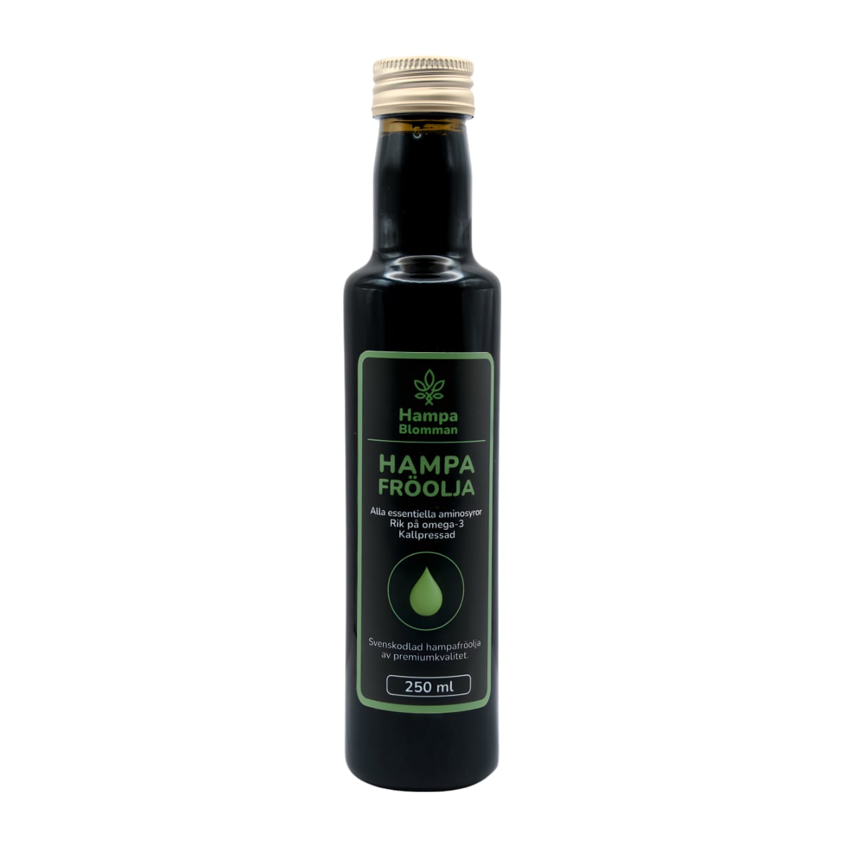 Upptäck vår kallpressade svenska hampfröolja – en näringsrik vegetabilisk olja rik på essentiella fettsyror som omega-3, omega-6 och omega-9 i perfekt balans. Denna näringsrika olja är känd för sin milda, nötiga smak och sina hälsosamma egenskaper, både invärtes och utvärtes.