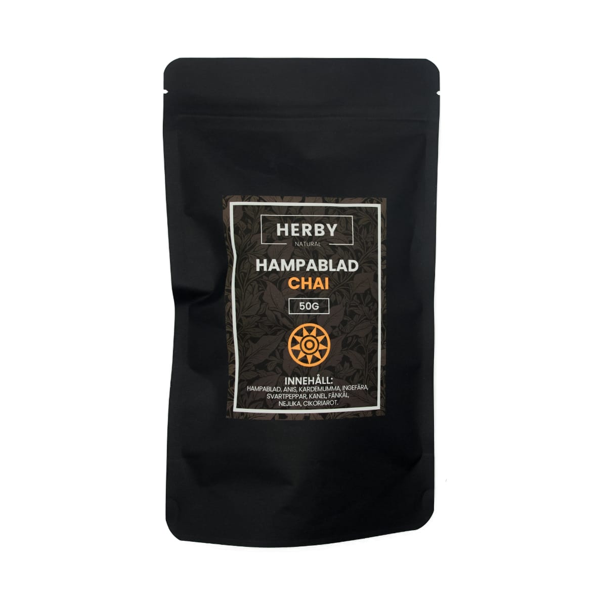 Ingredienser: Torkade hampablad, chai blandning (anis, kardemumma, ingefära, svartpeppar, kanel, fänkål, nejlika, cikoriarot)